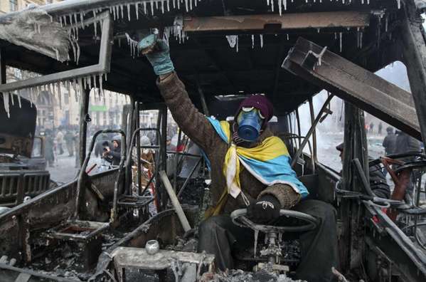 Manifestación, manifestantes se enfrentan con la policia en Kiev